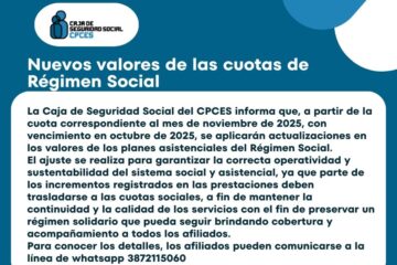 La Caja de Seguridad Social del Consejo Profesional de Ciencias Económicas de Salta informa a sus afiliados que, debido la morosidad en el pago de las cuotas y a los fines de seguir fortaleciendo el sistema jubilatorio, se iniciarán acciones de cobranzas legales tendientes a regularizar dichas deudas. Recordamos que Leer más…