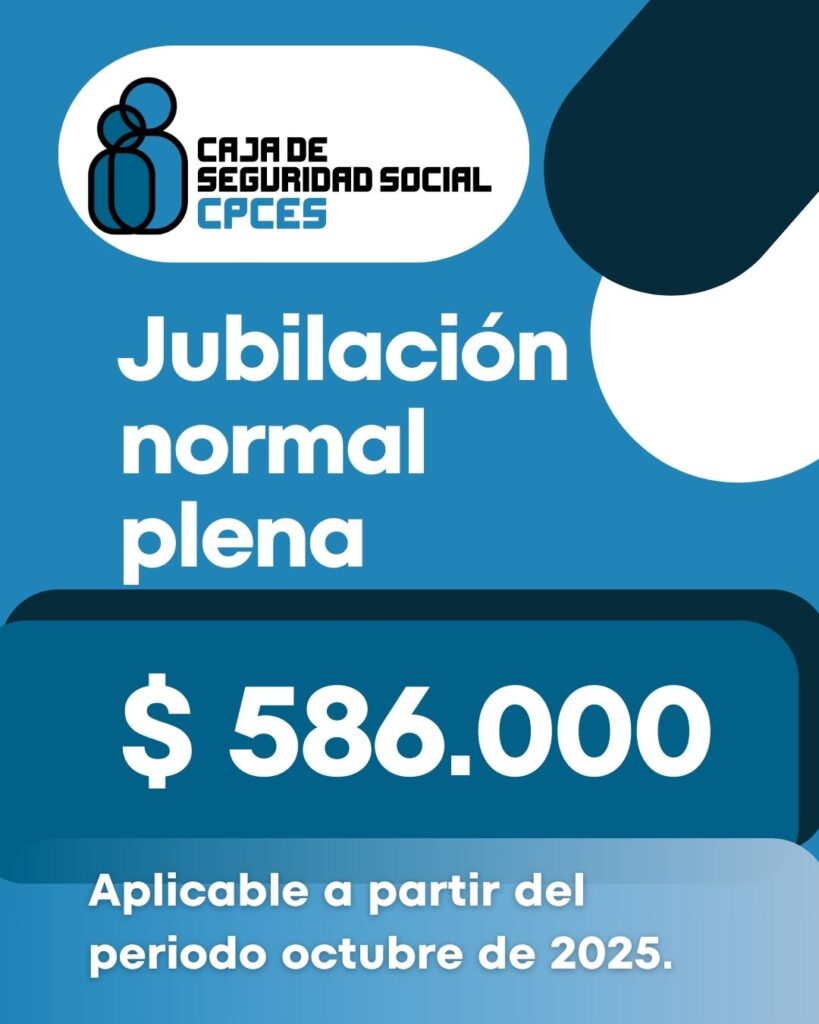 LaCaja de Seguridad Social del CPCEScomunica que, tras la actualización del valor de la Unidad de Aporte a $5.860, el haber de lajubilación normal plena se fijará en $586.000 a partir del periodo octubre de 2025.